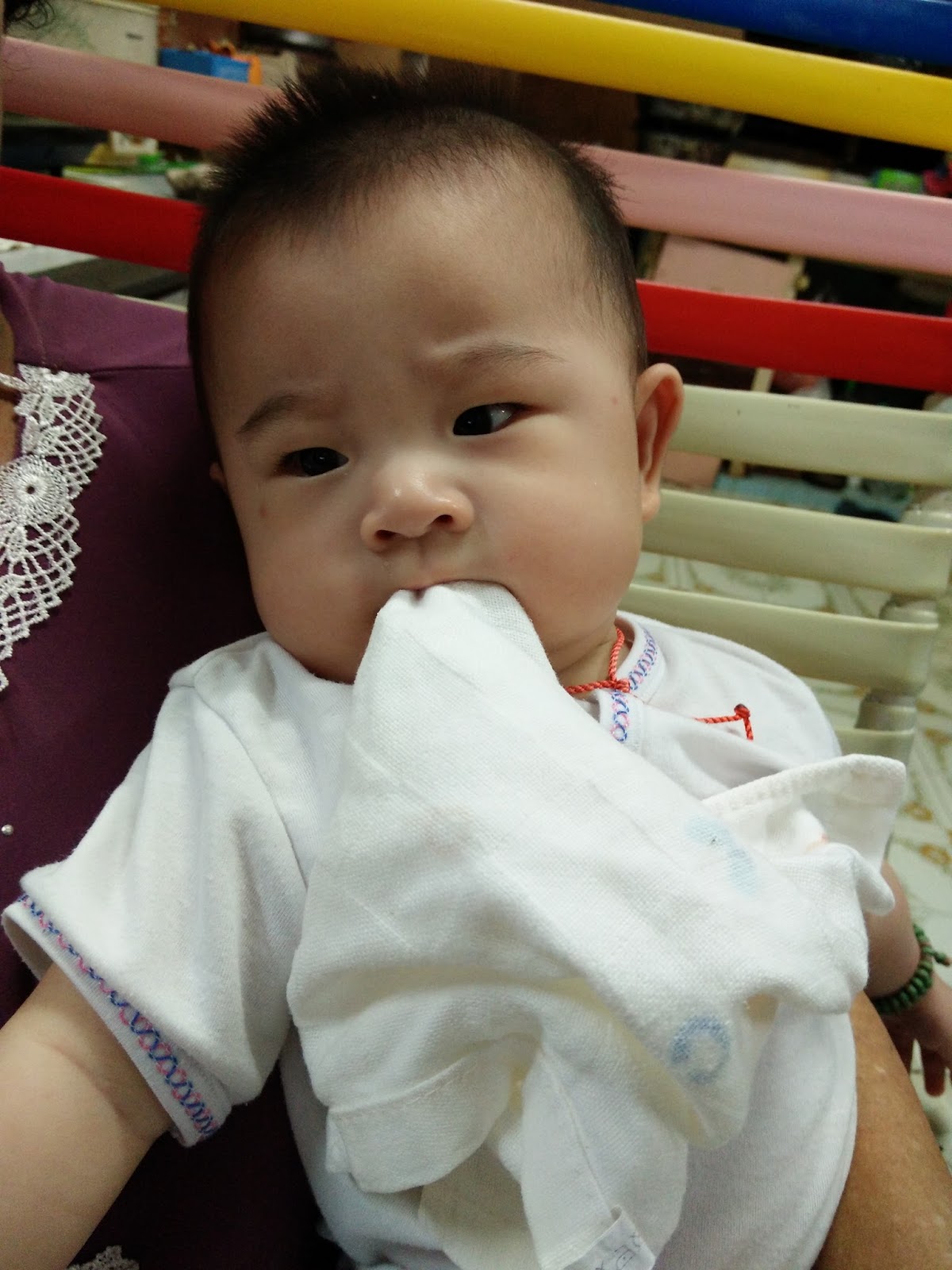 满月了,终于要把你的头发给剃光了,心里是不舍的,可是外婆说胎发一定要剃哦!^^